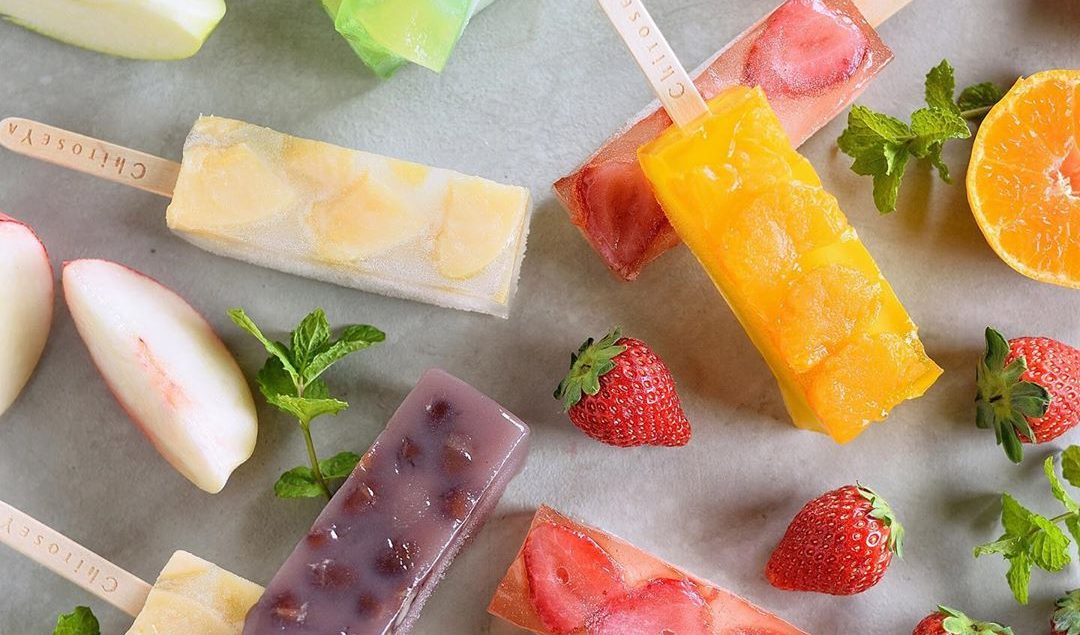 ヘルシーな和素材の葛を使用して製作したフルーツ入りのアイスバーです。